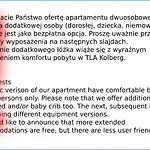 Kołobrzeg şehir merkezine 20 dakikalık yürüme mesafesinde yer alan Tla Kolberg Daire, tesis içinde otopark sunmaktadır. Tla Kolberg Daire dairesi, yürüyüş, bisiklet için iyi bir başlangıç noktasıdır.